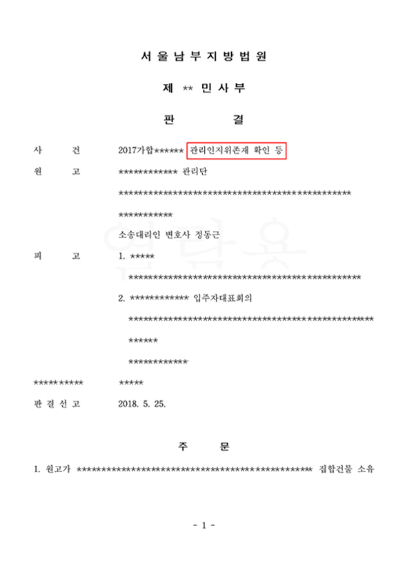 집합건물 관리인지위존재확인