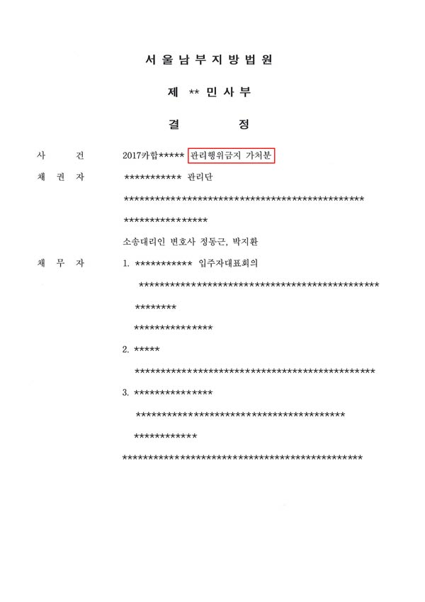 집합건물 관리행위금지가처분